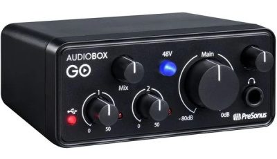 Presonus Audiobox GO Externt ljudkort, 2st ingångar, 2st utgångar, XMAX preamp, +48V fantommatning, kompatibel med iOS och Andriod